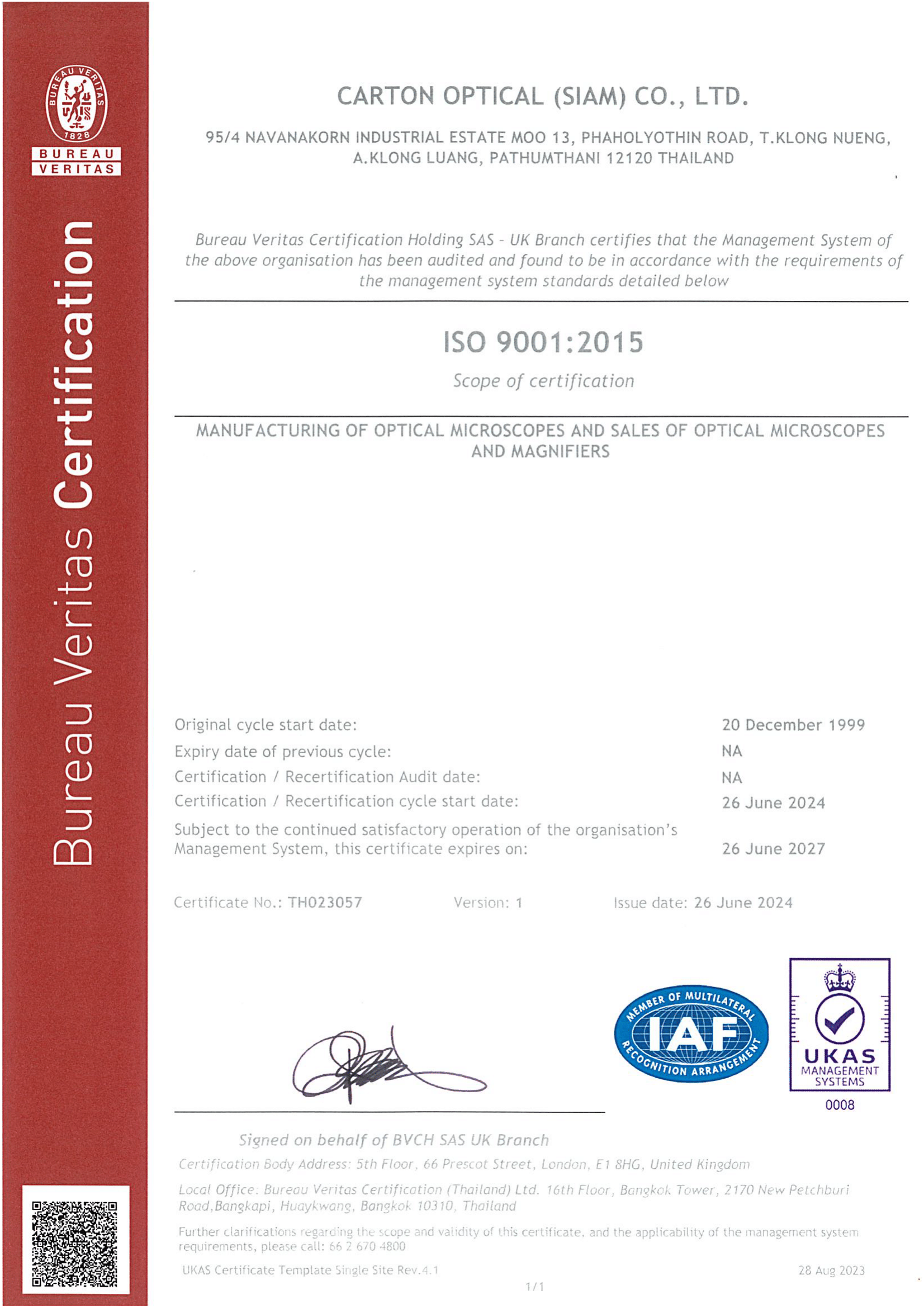 To ensure the continued support and loyalty orits customers, Carton Optical (Siam) Co., Ltd. maintains the highest standards of quality in both its products and manufacturing processes. The company's products always comply with strict international requirements. Each step of the manufacturing process is closely monitored for high quality and efficiency by Q.C. staff, who also ensure that incoming raw materials are of a consistently high quality. Finished products are checked for consistent quality at the final stage of the production process.